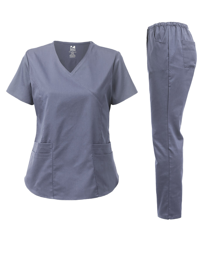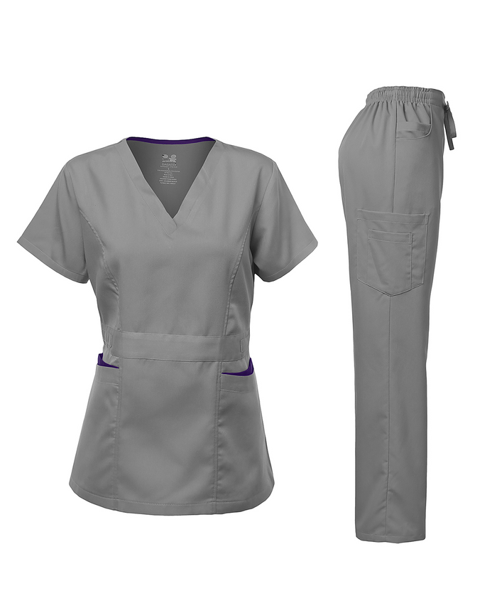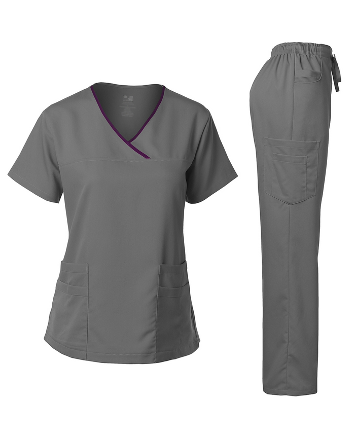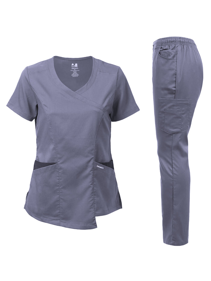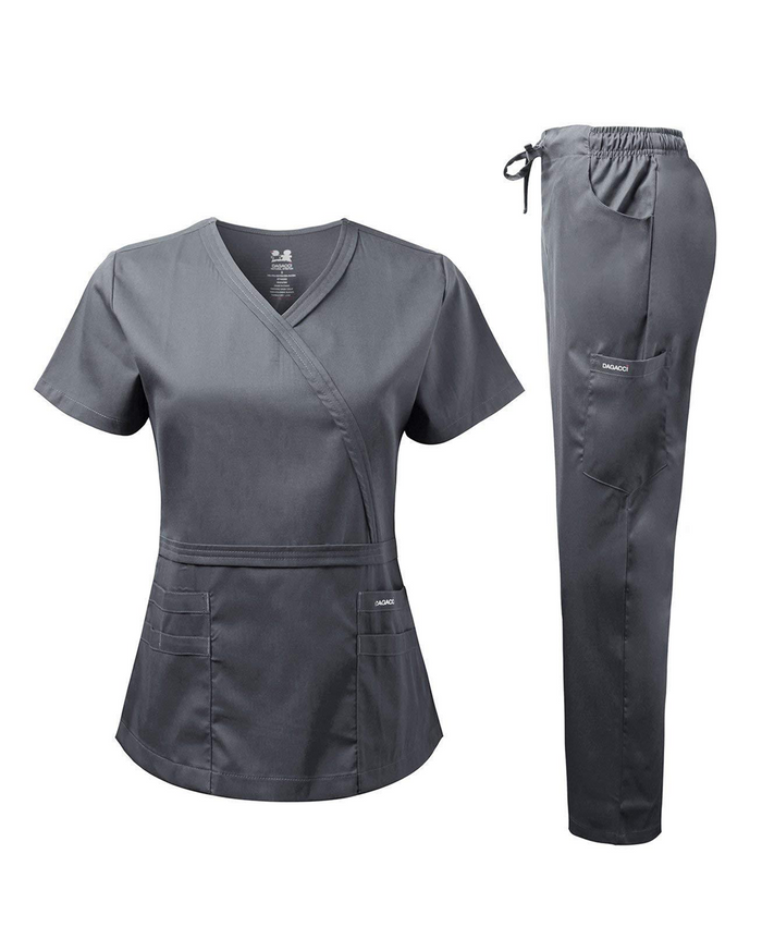 DAGACCI OFFICIAL Natural Stretch Women's Contrast Wrap Scrub Sets