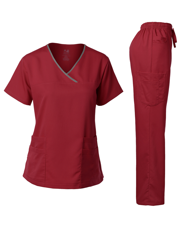 DAGACCI OFFICIAL Natural Stretch Women's Contrast Y-Neck Scrub Sets [NS2104]