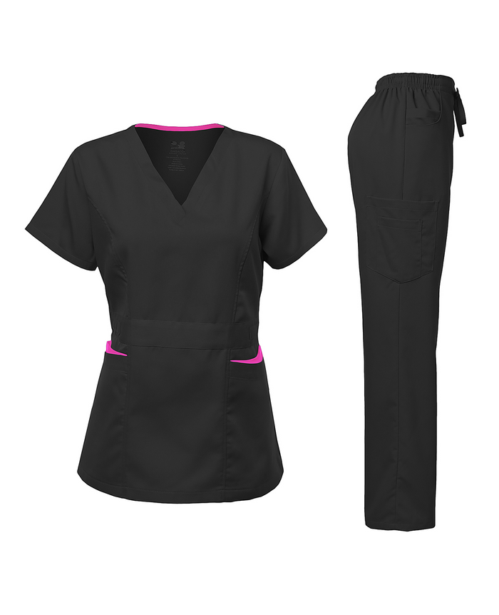 DAGACCI OFFICIAL Natural Stretch Women's V-Neck Contrast Pocket Scrub Sets [NS2251]